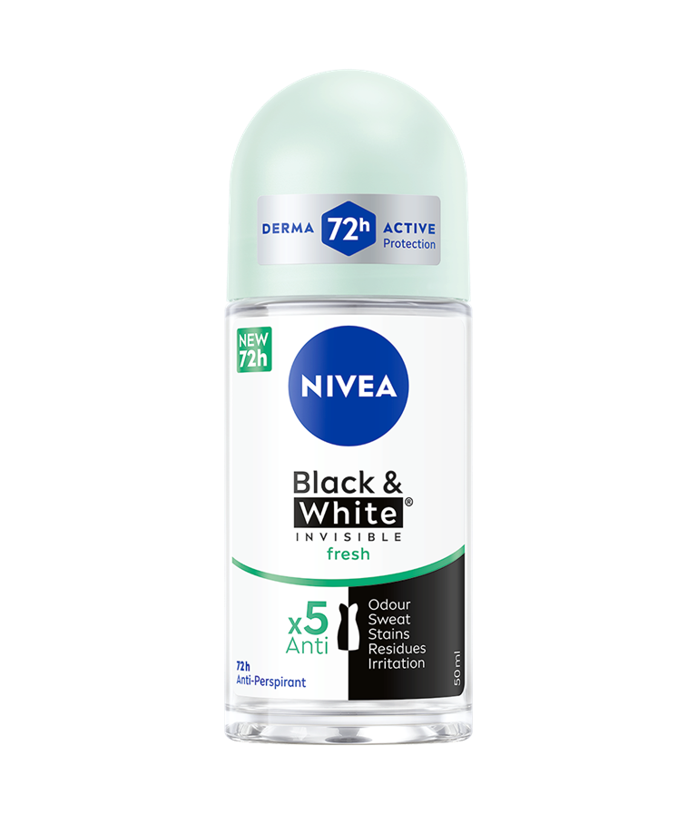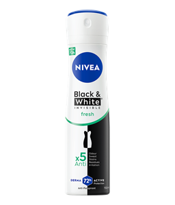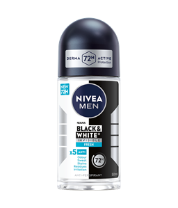 NIVEA Black & White Invisible linija proizvoda pruža zaštitu od bijelih tragova na tamnoj odjeći i žutih mrlja na svijetloj odjeći zahvaljujući svojoj patentiranoj tehnologiji. Pouzdana 72-satna zaštita od znojenja i neugodnih mirisa koja njeguje vašu kožu.