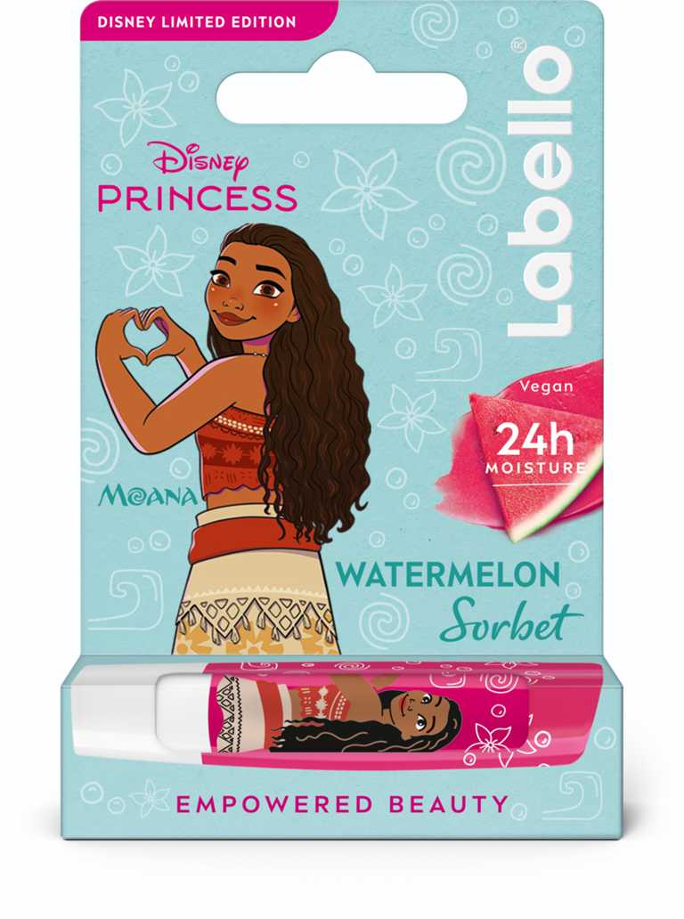 Limitirano izdanje Labello Disney Princess balzama za usne u simpatičnom pakiranju s princezom Pocahontas usnama daje ružičasti sjaj i štiti ih od hladnoće, vjetra i suhog zraka. 24 sata hidratacije.