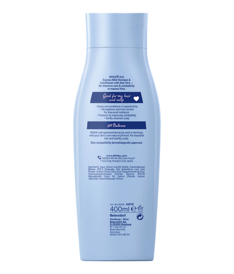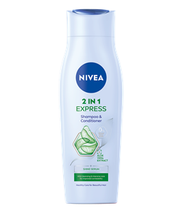 NIVEA Express 2 u 1 šampon i regenerator s jedinstvenom kombinacijom prirodnog ekstrakta aloe vere i seruma za sjaj nudi blago čišćenje i intenzivnu njegu kose u ekspresnom vremenu.