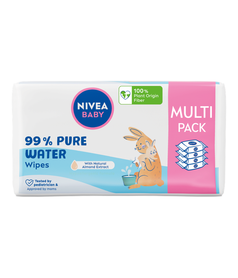NIVEA BABY 99 % Pure Water maramice čiste bebinu kožu nježno poput čiste vode i održavaju njezinu prirodnu zaštitnu funkciju.