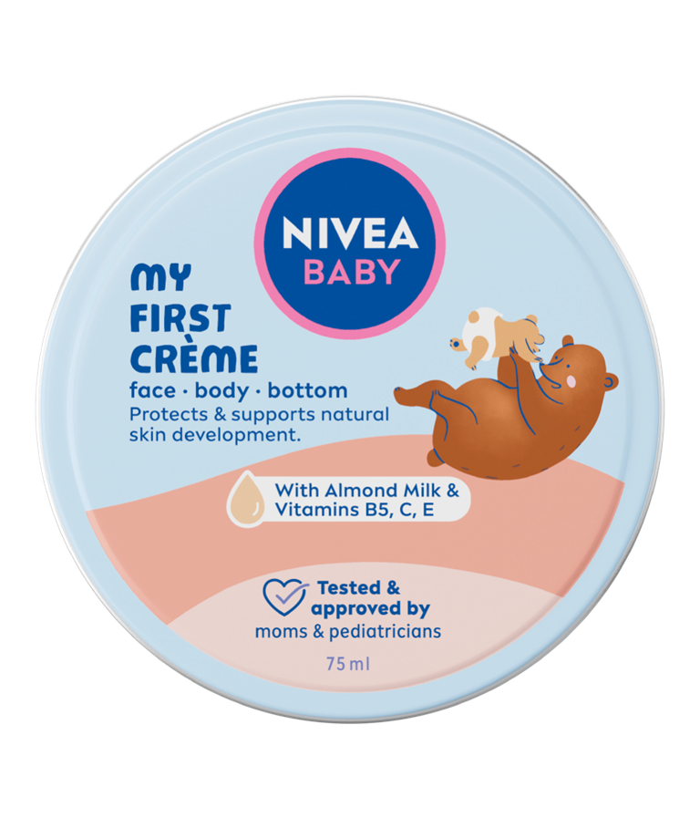 NIVEA BABY Moja prva krema za lice i tijelo štiti i podupire prirodni razvoj kože. Sadrži 98 % sastojaka prirodnog podrijetla.