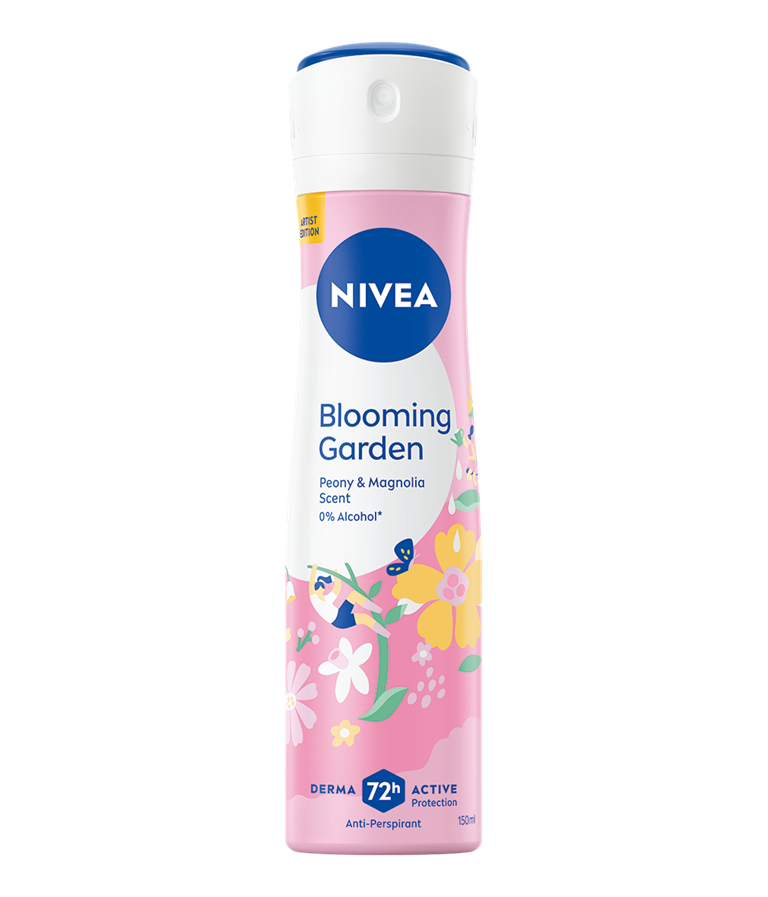 Uživajte limitiranom izdanju NIVEA Blooming Garden antiperspiranta u spreju, s mirisom božura i magnolije. Za 72-satnu zaštitu od neugodnih mirisa.