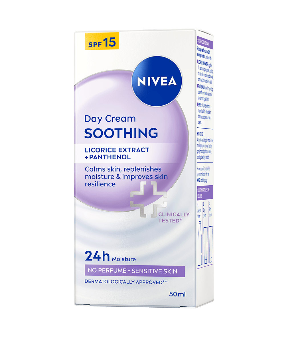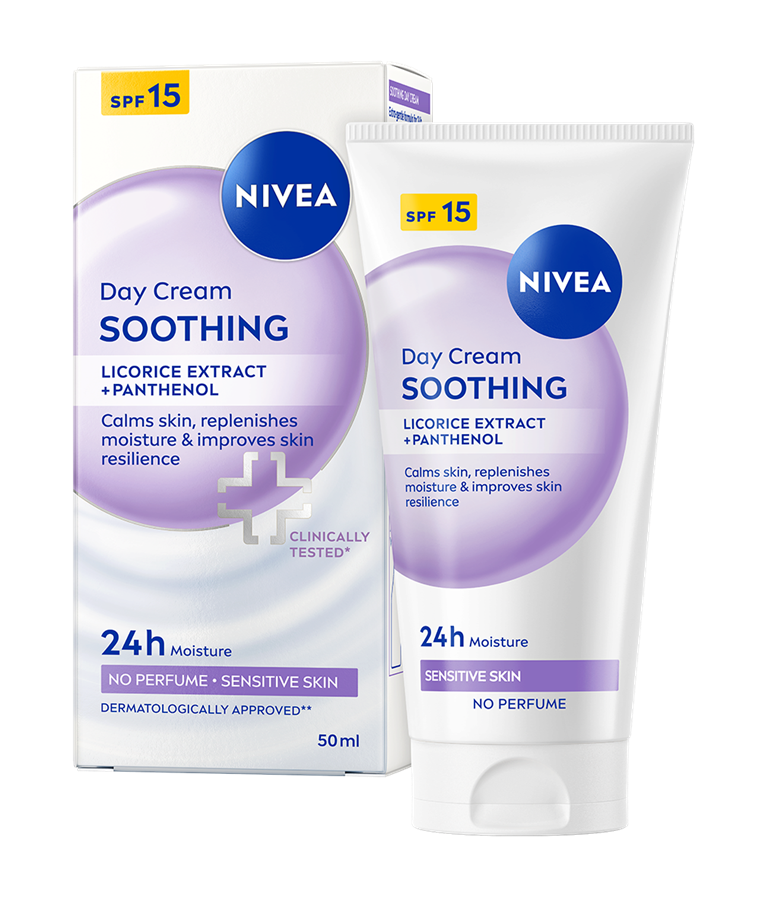 NIVEA Essentials umirujuća dnevna krema za osjetljivu kožu intenzivno hidratizira kožu do 24 sata. Krema sa SPF 15 umiruje kožu, jača njezin zaštitni sloj i poboljšava njezinu otpornost pružajući koži olakšanje, osjećaj ugode i zdrav izgled.
