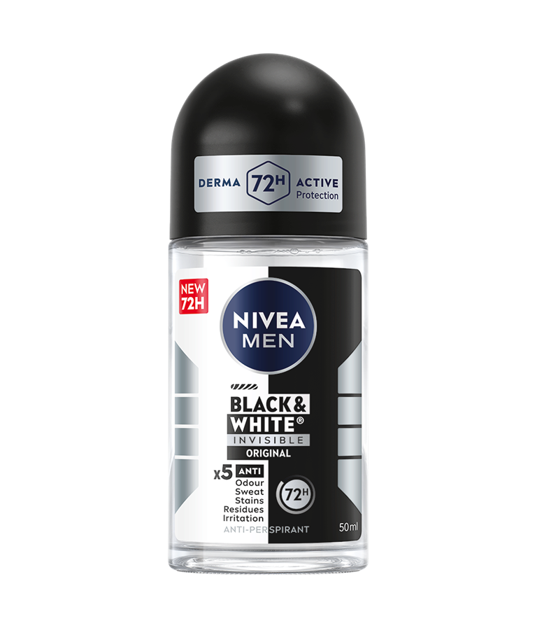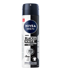 NIVEA Black & White Invisible linija proizvoda pruža zaštitu od bijelih tragova na tamnoj odjeći i žutih mrlja na svijetloj odjeći zahvaljujući svojoj patentiranoj tehnologiji. Pouzdana 72-satna zaštita od znojenja i neugodnih mirisa koja njeguje vašu kožu.