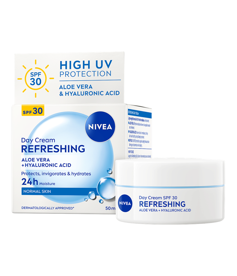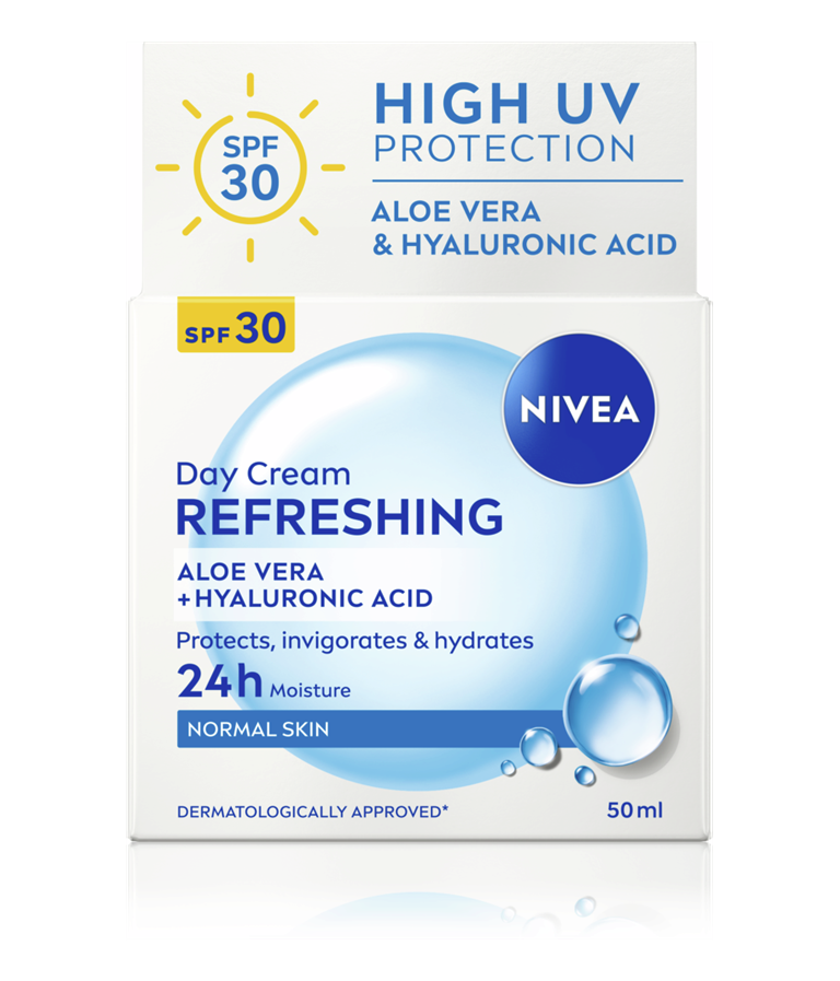 NIVEA njegujuća dnevna krema s aloe verom SPF 30 intenzivno hidratizira kožu, čini je mekom i posebno glatkom, te nudi zaštitu od utjecaja sunca i preranog starenja kože.