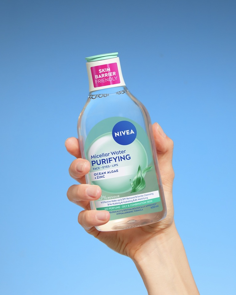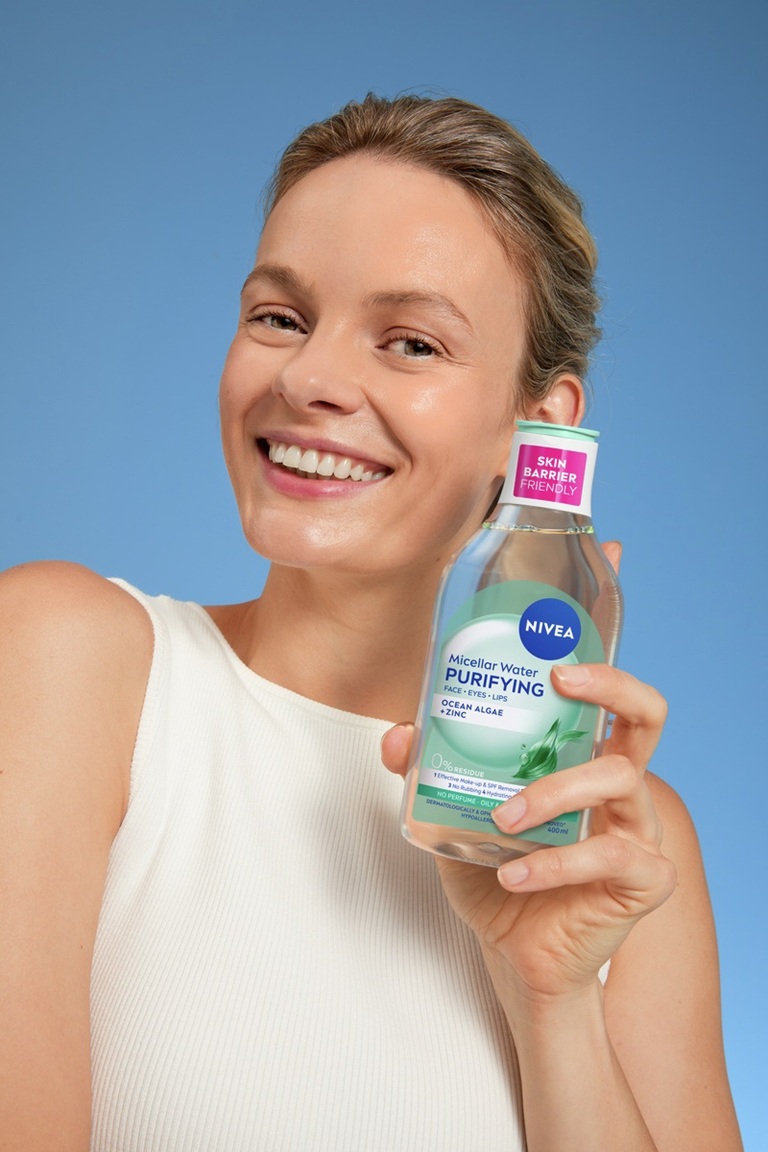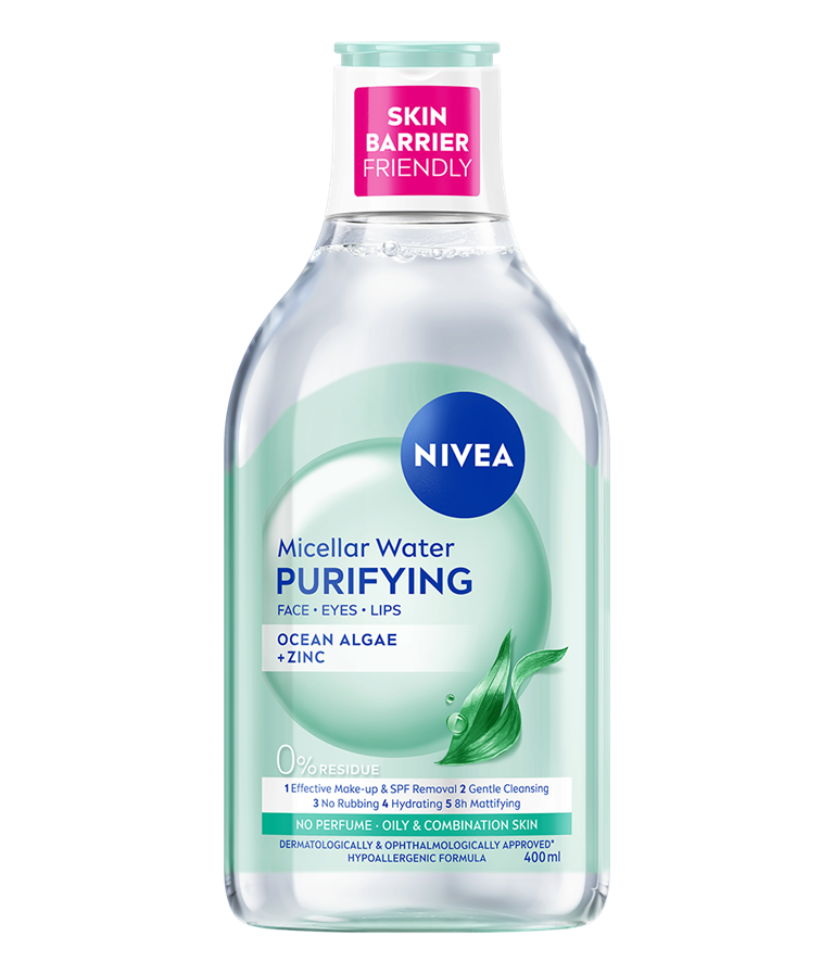 Pročistite svoju kožu uz NIVEA Pročišćujuću micelarnu vodu. S ekstraktom morskih algi, cinkom i kompleksom aminokiselina, nježno uklanja šminku, nečistoće, sredstva za zaštitu od sunca i višak sebuma, ostavljajući kožu svježom i matiranom.