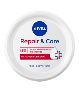 NIVEA Repair & Care univerzalna krema bez mirisa savršeno umiruje suhu i osjetljivu kožu. Nježna, hipoalergena formula s 15 % glicerina, provitaminom B5 i ceramidima pruža intenzivnu njegu i umiruje nadraženu kožu već nakon prve primjene. Sigurna je za djecu stariju od 3 godine.