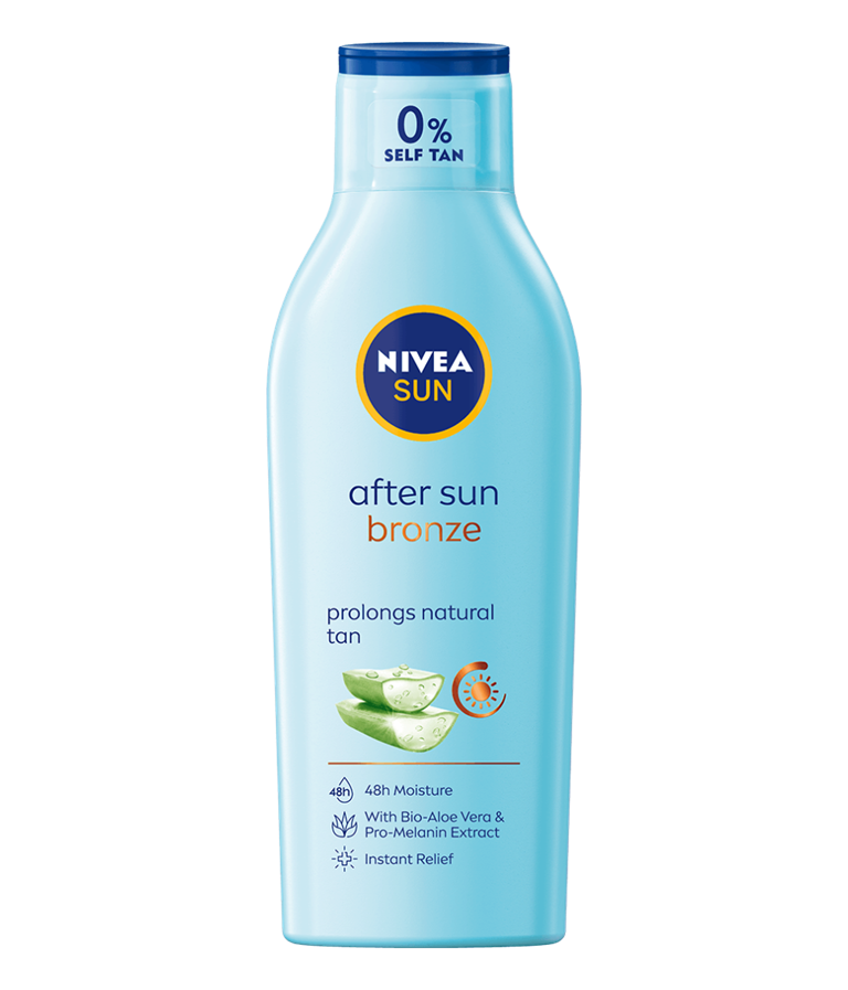 NIVEA SUN Bronze losion poslije sunčanja s organskom aloe verom i ekstraktom pro-melanina održava lijepu preplanulost i vlaži kožu 48 sati.