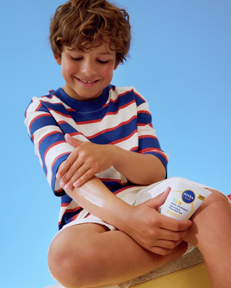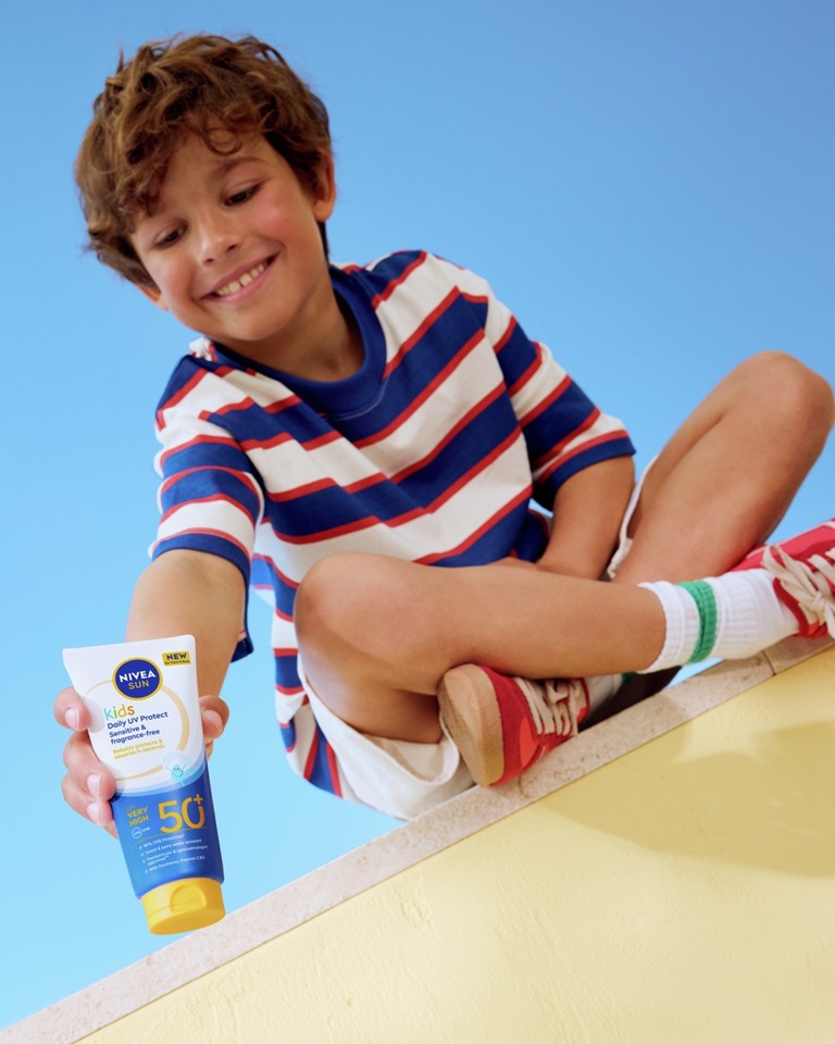 NIVEA SUN Kids Daily UV Protect dječji losion u tubi SPF 50+ za osjetljivu dječju kožu je bez mirisa, brzo se upija i pruža vodootpornu zaštitu od sunca. Savršen za svakodnevnu upotrebu, za lice i tijelo.