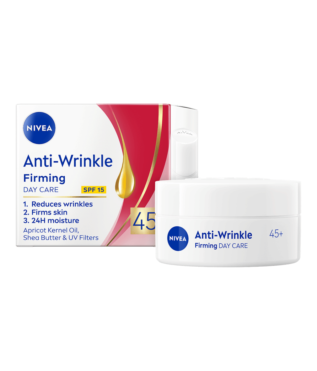 NIVEA učvršćujuća dnevna krema protiv bora vidljivo smanjuje bore i sitne linije, poboljšava čvrstoću kože te pruža dugotrajnu hidrataciju i njegu.